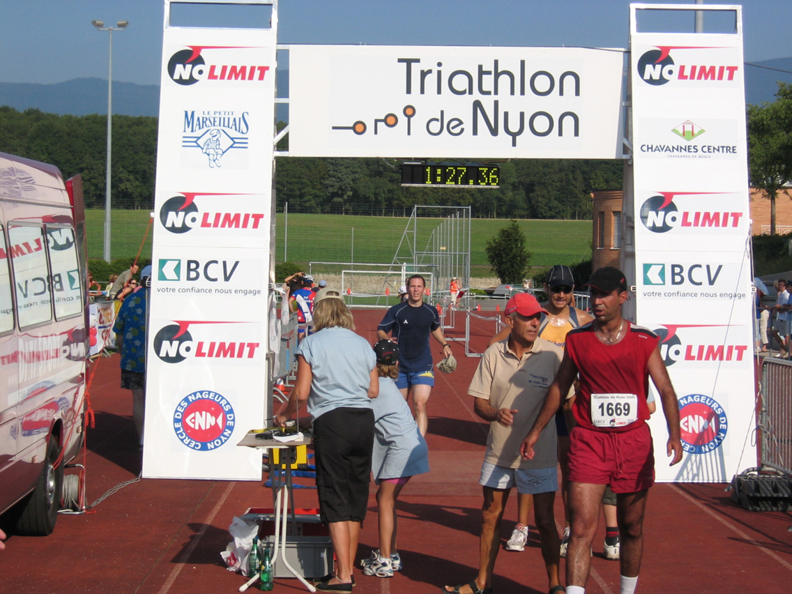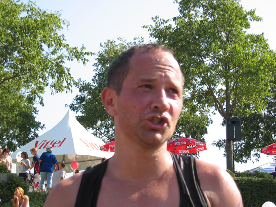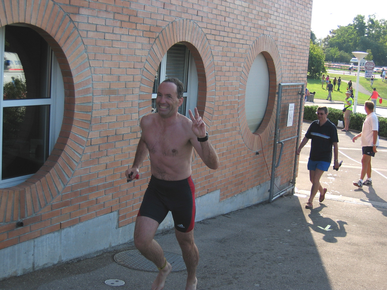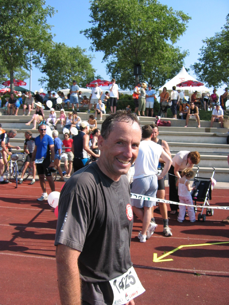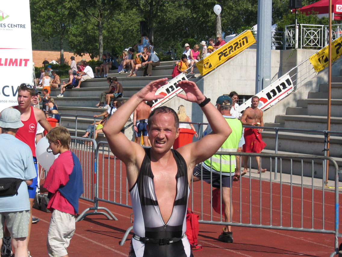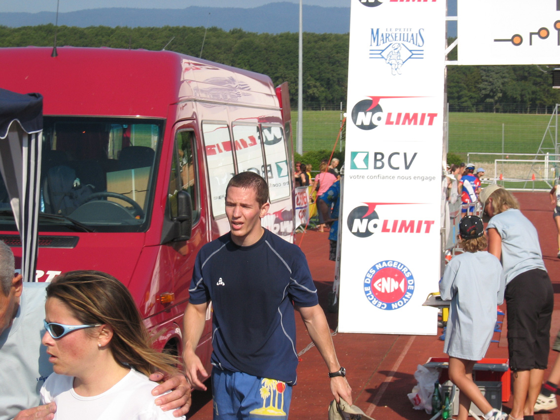| Vidéo avi 1 - Départ course à pied de Seb (relais) avec commentaires élogieux du speaker en font sonore. (4.9 mo) | Vidéo avi 2 - Départ course à pied de Muffat, avec en audio Aron qui lui donne des indications sur le chemin à prendre (oui, le même Aron qui a réussit à prendre la mauvaise entrée dans la zone de change après la natation 30 min plus tôt). (4.3 mo) |