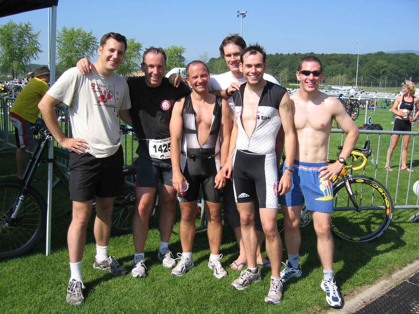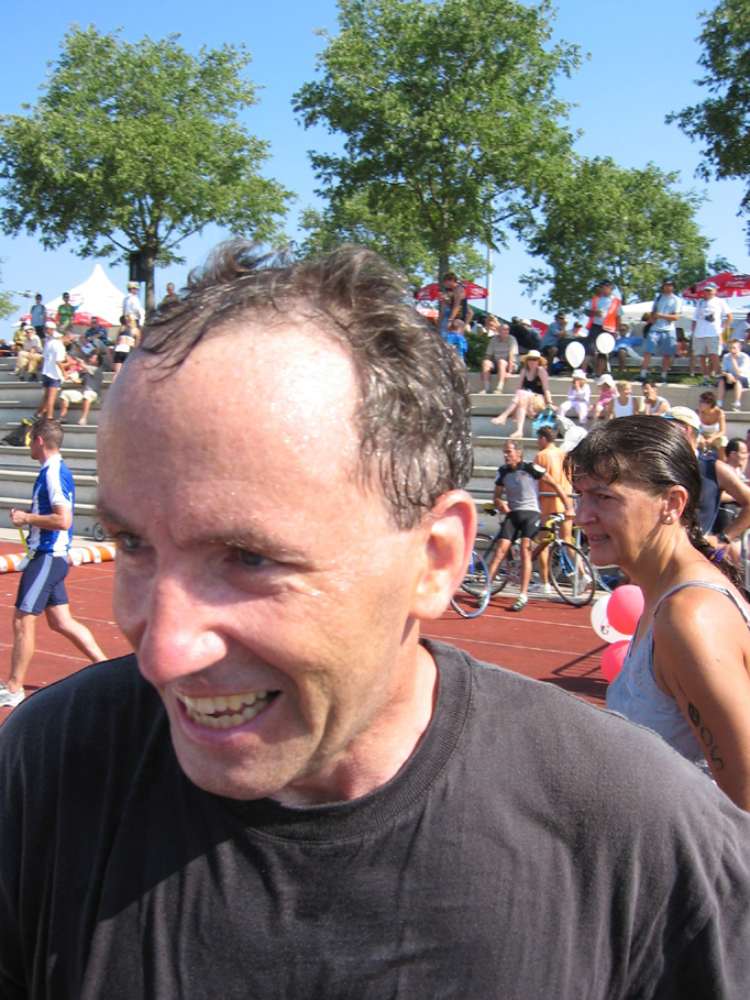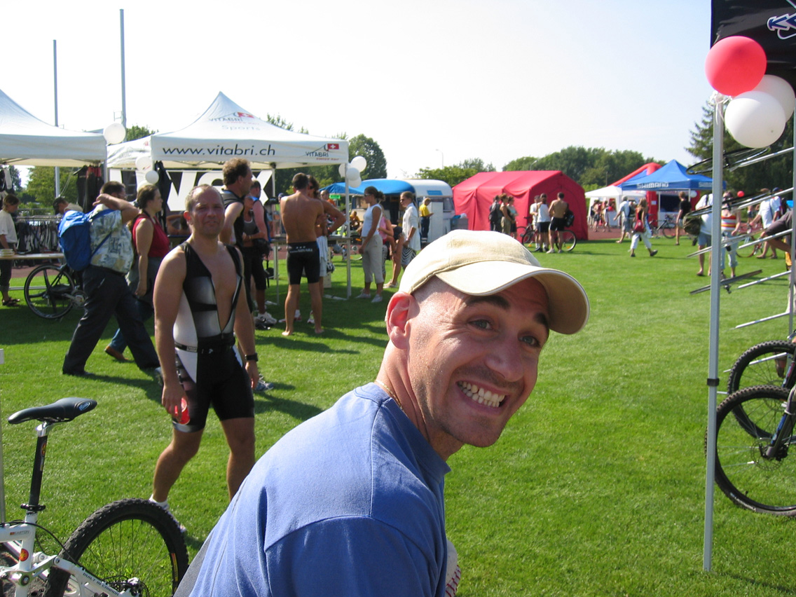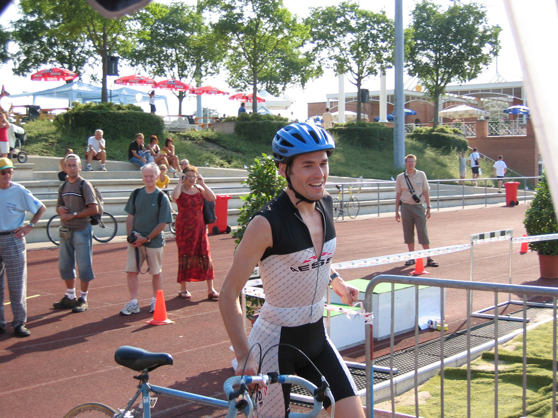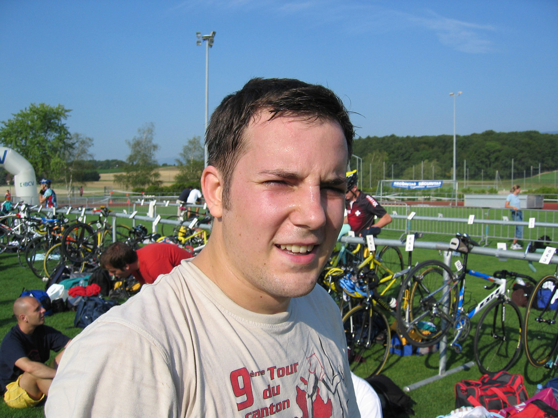 | Vidéo avi 1 - Départ course à pied de Seb (relais) avec commentaires élogieux du speaker en font sonore. (4.9 mo) | Vidéo avi 2 - Départ course à pied de Muffat, avec en audio Aron qui lui donne des indications sur le chemin à prendre (oui, le même Aron qui a réussit à prendre la mauvaise entrée dans la zone de change après la natation 30 min plus tôt). (4.3 mo) |