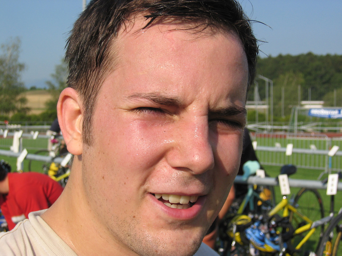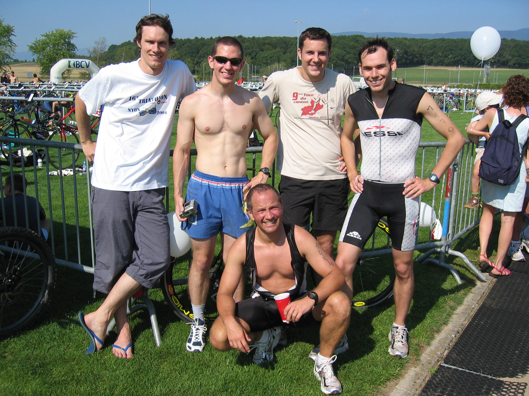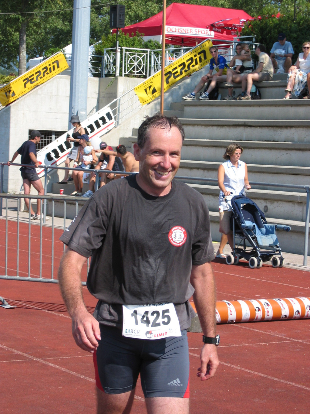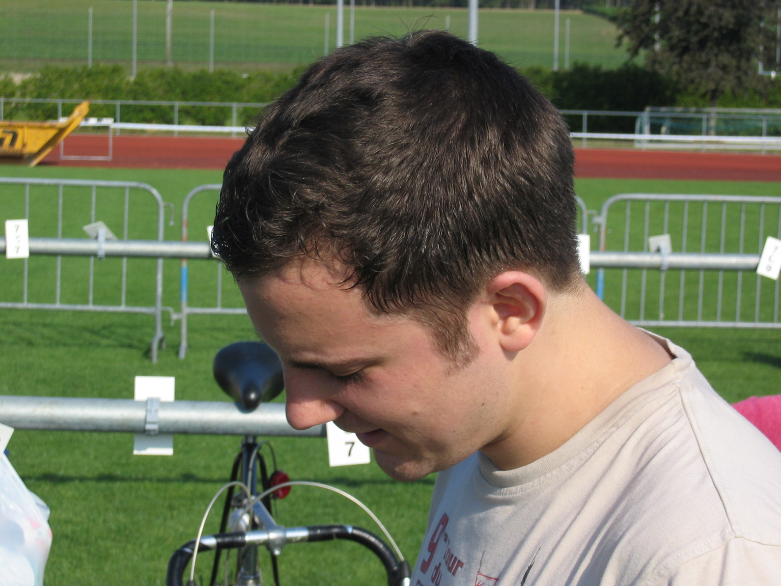 | Vidéo avi 1 - Départ course à pied de Seb (relais) avec commentaires élogieux du speaker en font sonore. (4.9 mo) | Vidéo avi 2 - Départ course à pied de Muffat, avec en audio Aron qui lui donne des indications sur le chemin à prendre (oui, le même Aron qui a réussit à prendre la mauvaise entrée dans la zone de change après la natation 30 min plus tôt). (4.3 mo) |